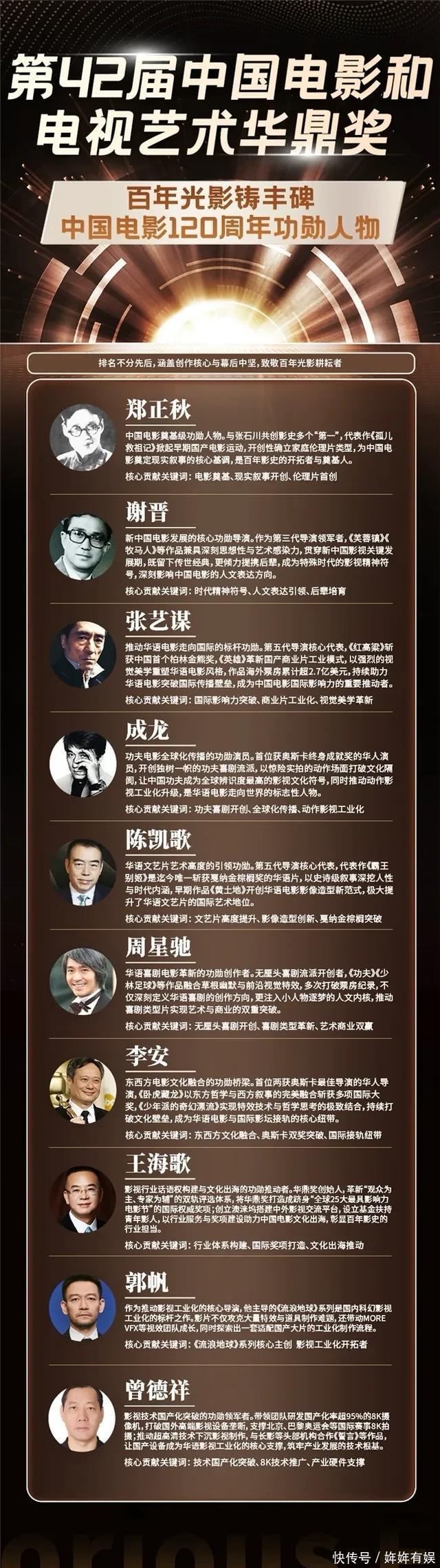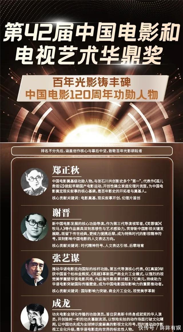 重磅!华鼎奖公布电影120周年功勋人物,成龙、张艺谋纷纷上榜